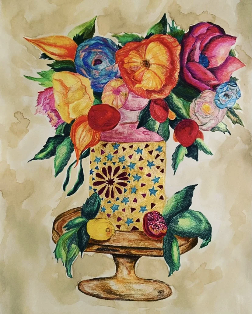 The art piece below is the artwork I created while creating a tasting menu based on works of art by the Italian-English painter Agostino Brunias, who emigrated to Dominica, and the French painter, Le Masurier, who emigrated to Martinique.